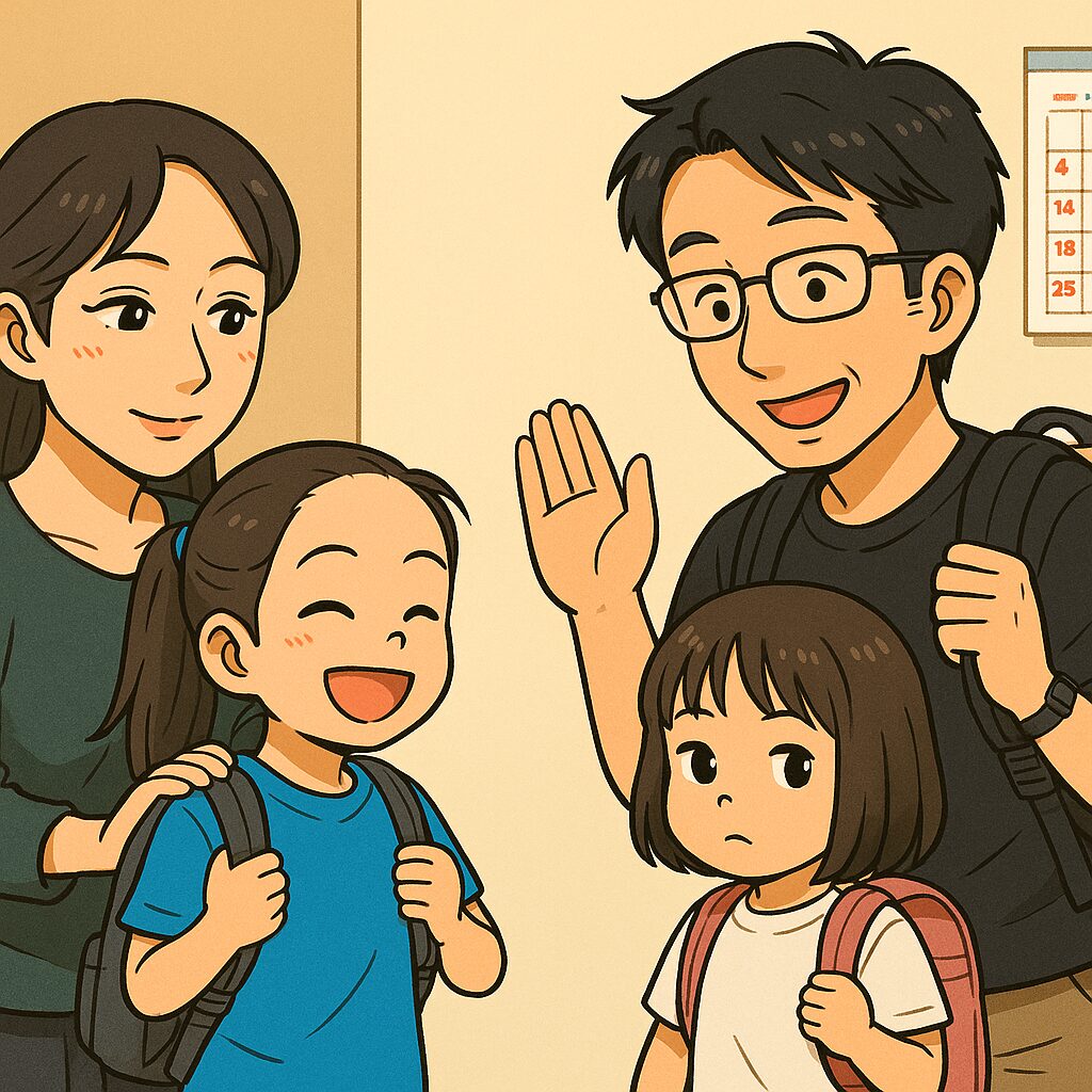 子どもたちの支度や、朝のちょっとしたトラブル対応も日常茶飯事ですが、笑顔で送り出せるよう心がけています。が、実際にはそうはいきませんね。